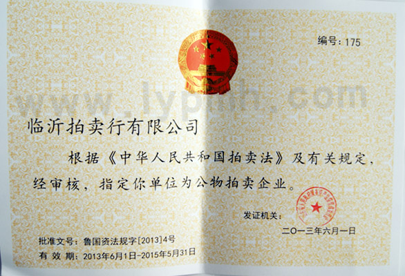 拍賣(mài)經(jīng)營(yíng)批準(zhǔn)證書(shū)