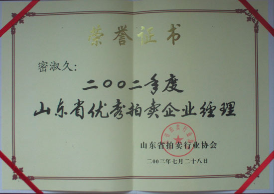 優(yōu)秀拍賣企業(yè)經(jīng)理